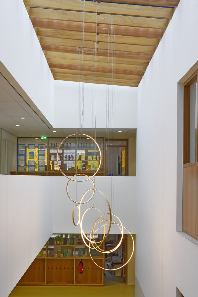 Hermeta Interieurbouw verzorgde in totaal voor de 17 lokalen, 80 garderobemeubels en 34Â vitrinekasten. In de garderobemeubels kunnen de leerlingen hun jassen en tassen netjes opbergen. De zwarte aluminium jashaken en plafondhaken van Hermeta zijn daarin een subtiele toevoeging.