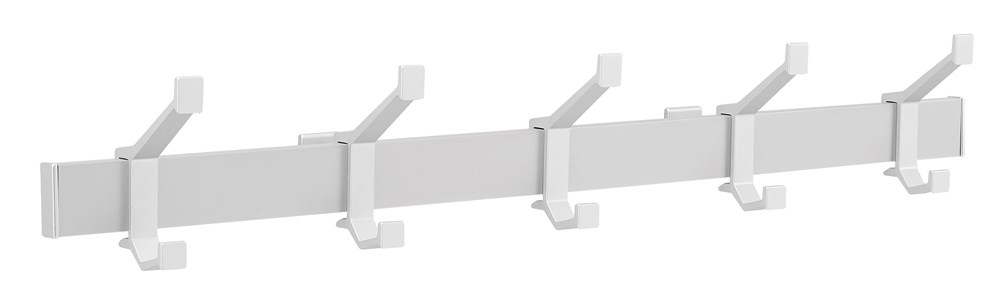 De aluminium wandgarderobe met haken, steunen en eindkapjes: