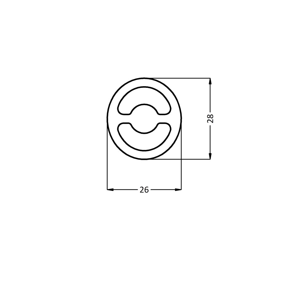 KOKER ROND/OVAAL 28x26x3 ALUM. 600CM MAT NATUREL (3850), KOKER ROND/OVAAL 28x26x3 ALUM. MAT NATUREL (3850)